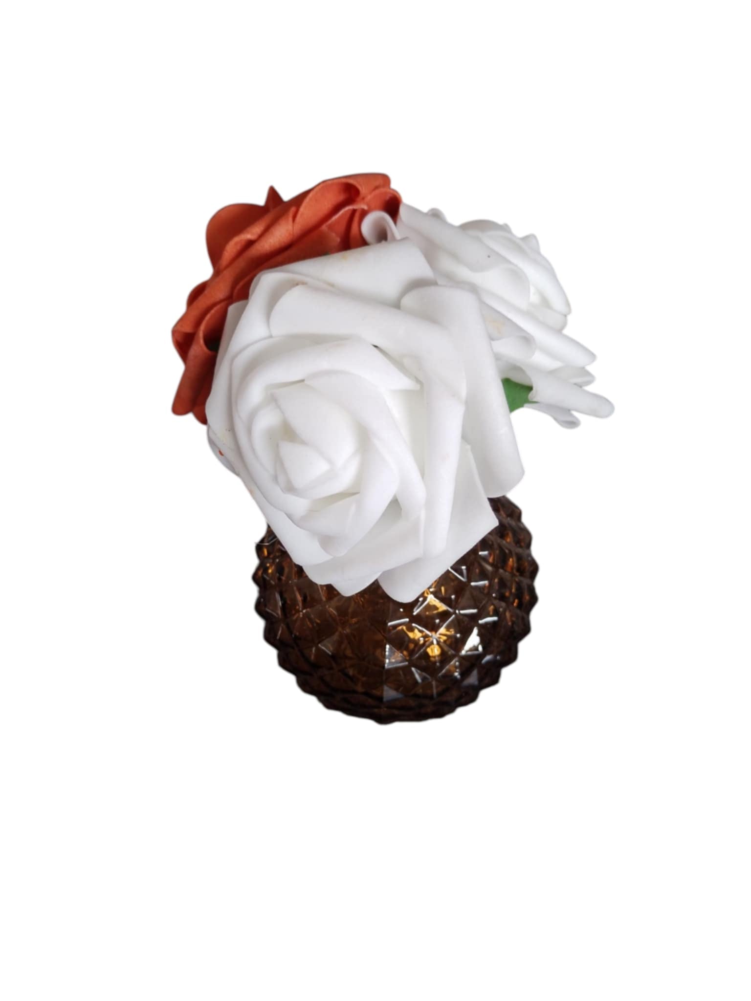 Loue 12 petits vases marron idéale pour décorer vos tables pour tout évènements. Peuvent être demander avec les fleurs ( différentes couleurs) en décoration.
